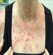 Lichen planus is a autoimmune skin disease with recurrent, pruritic, pink, pupal, flat, rough, scaly patches. Generally oral and/or gentical lesions
