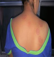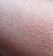 Urticaria is a type of allergic reaction of dust, food, smell or any antigen. It appears as raised, red, erythematic, itchy patches over the any part of the body.