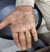 Palmoplantar keratoderma (PPK) is a group of skin conditions characterized by (hyperkeratosis) thickening of the skin on the palms and soles.